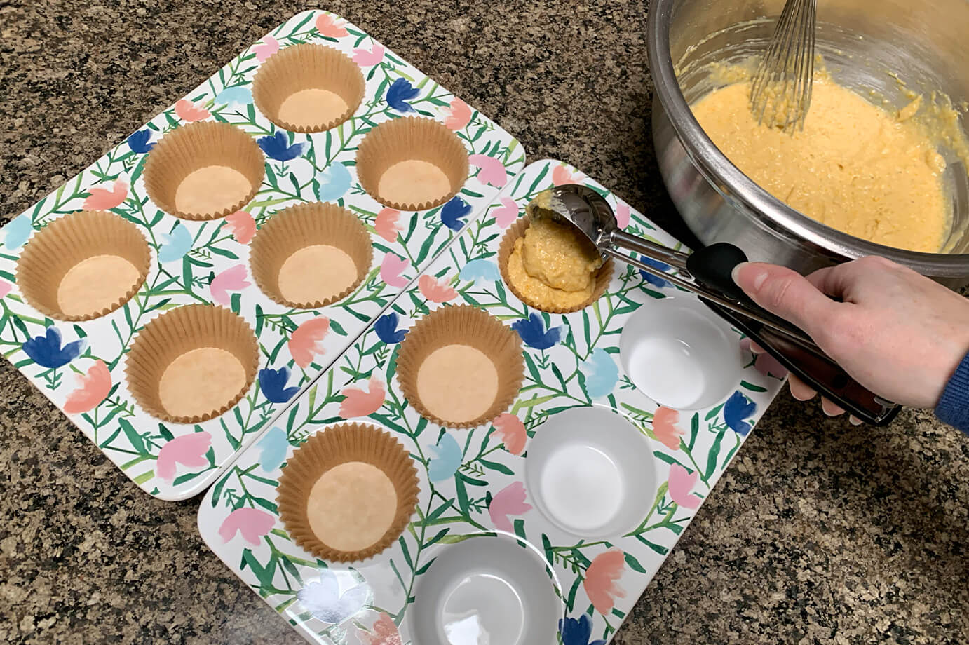 - Gluten is not your friend in this recipe, so avoid developing it and do not overmix the batter; this can lead to dense muffins. Mix until just combined.